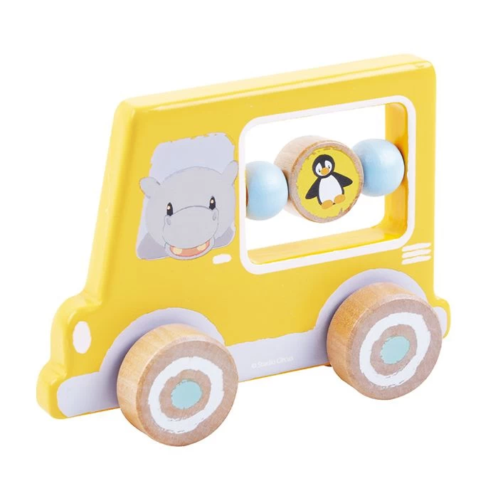 Een leuk geel activiteiten autootje met een nijlpaard, daar kunnen ze al kruipend mee uit de voeten! De kralen kunnen worden gedraaid en dat zorgt voor nog meer pret tijdens het spelen.