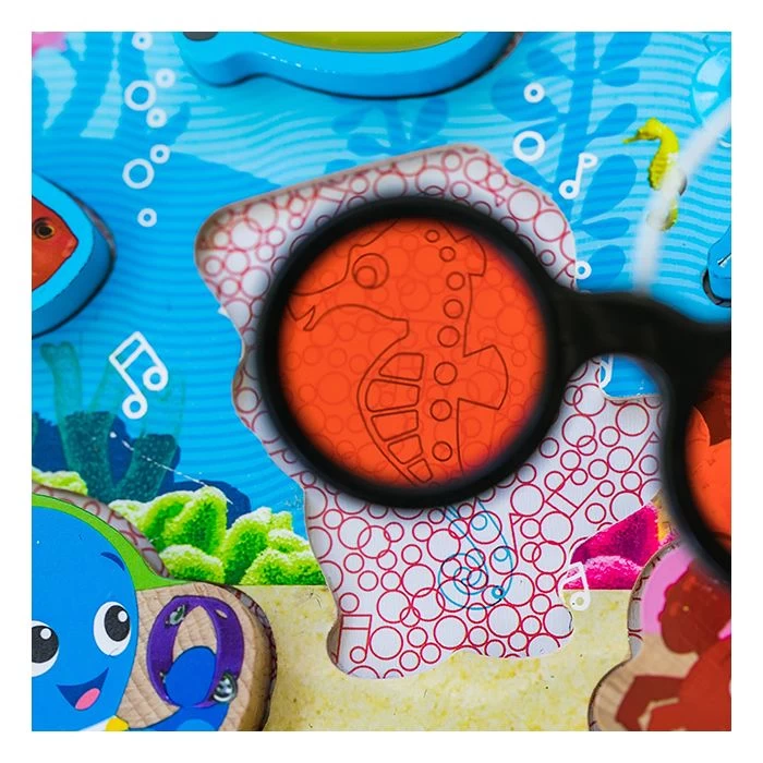Kinderen ontdekken onderwater dieren en lossen samen met hun ouders de onderwater vormpuzzel op. De puzzelstukken zijn groot zodat baby’s deze makkelijk vast kunnen pakken. Met de bril kunnen kinderen samen met hun ouders of vriendjes verborgen schatten zoeken. Stimuleert de ontwikkeling van motorische vaardigheden.