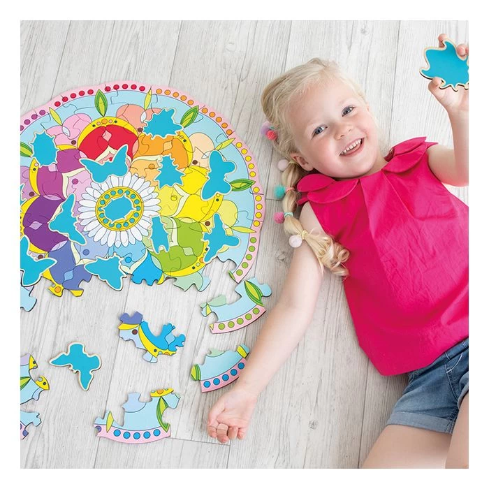 Allerlei kleine insecten verstoppen zich in deze fantasierijke en spannende puzzel van Beleduc. Door het kleurrijke patroon van de mandala zijn ze moeilijk te herkennen.