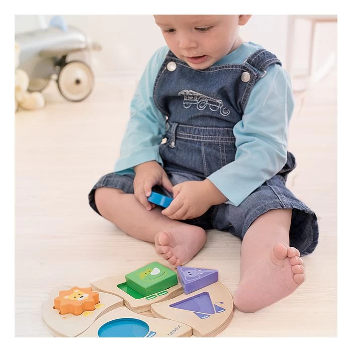 Maak je vier dierenvriendjes compleet met de houten sorteerplank dieren. Door het leuke ontwerp van de houten sorteerplank dieren leren kinderen met veel plezier basisvormen kennen.
