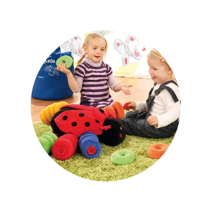 | Inhoud | 1 lieveheersbeestje, 24 gekleurde ringen, 2 kleuren dobbelstenen, 1 katoenen zak |