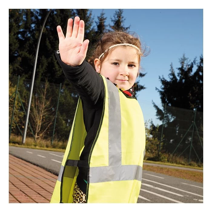 Door de reflecterende strips zijn jonge verkeersdeelnemers extra goed zichtbaar. Door de elastieke band aan de zijkant is dit veiligheidsvest geschikt voor meerdere leeftijdsgroepen.
