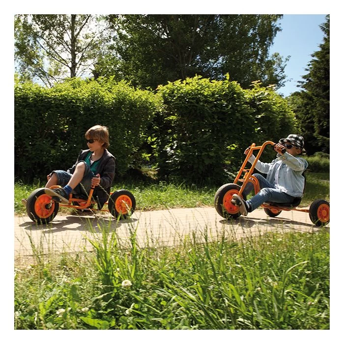 Relaxt cruisen! Deze driewieler chopper biedt een unieke fietservaring met zijn lage zitje en hoge stuur.