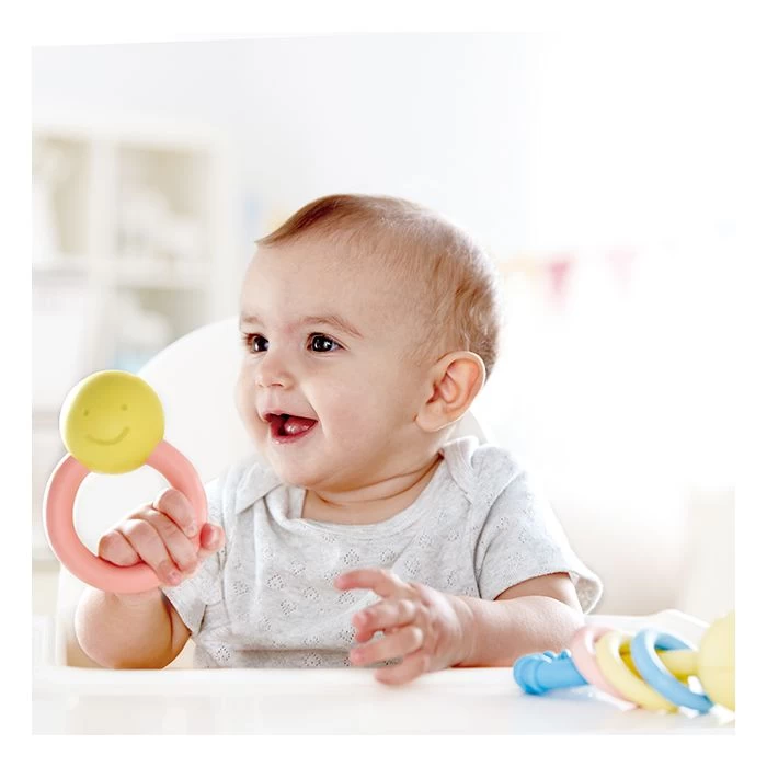 Deze rammelaar is gemaakt van Japanse rijst en heeft aan de bovenkant een lachend gezichtje. De rammelaar is makkelijk vast te pakken en houden en maakt een subtiel rammelend geluid. De ring beweegbaar zodat de zintuigen van baby’s en dreumesen gestimuleerd worden!