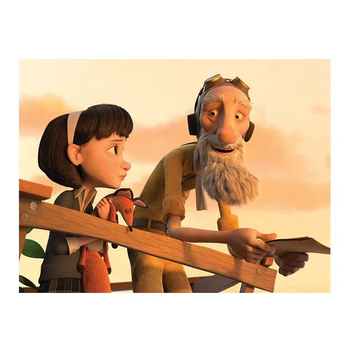 Drie puzzels van 12 stukjes met afbeeldingen uit de animatiefilm De Kleine Prins. De puzzels zijn verpakt in een schitterende doos.