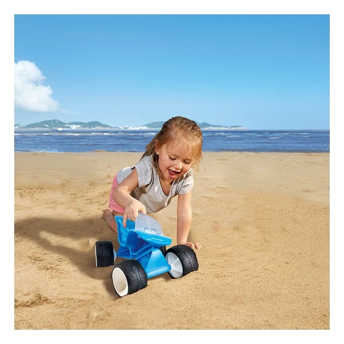 De blauwe zandbak duinbuggy heeft een kantelbare body en een gemakkelijk te hanteren handvat. Hierdoor vinden kinderen het erg leuk om de duinbuggy rond te duwen op het strand, in de zandbak of in huis. Dankzij het lage profiel en de onafhankelijk draaiende wielen is de duinbuggy ideaal voor gebruik binnenshuis en buitenshuis!