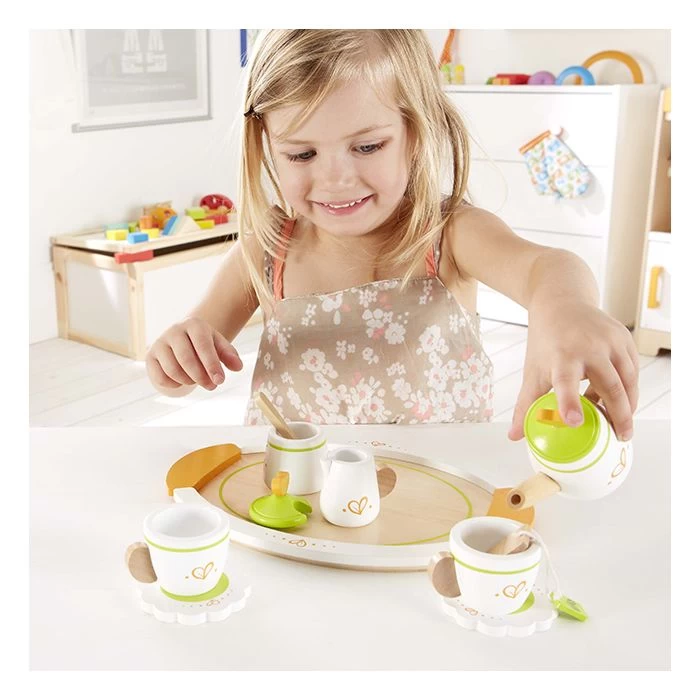 Met dit houten thee servies neemt je kind je even mee om tot rust te komen met een thee pauze. Dit complete thee servies maakt zelfs alle oma’s jaloers. Erg leuk om de speelkeuken van je kind aan te vullen met dit speelgoed servies.