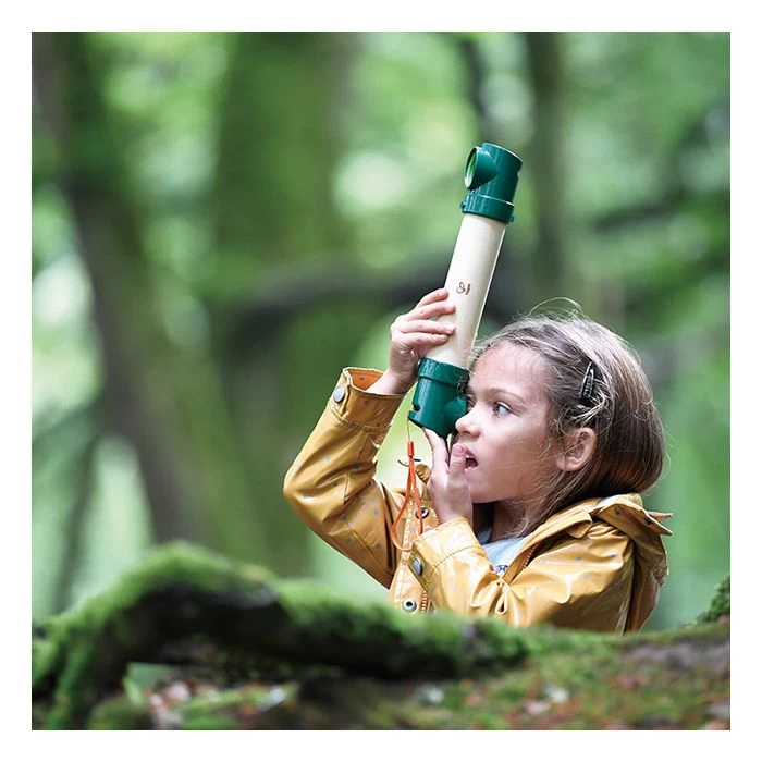 Met deze periscoop van bamboe en gerecycled kunststof kun je kijken zonder gezien te worden! Kijk over muren of in vogelnestjes, speel verstoppertje of spionagespelletjes. De periscoop wordt geleverd met een polsriem en is makkelijk mee te nemen doordat het een lichtgewicht is.