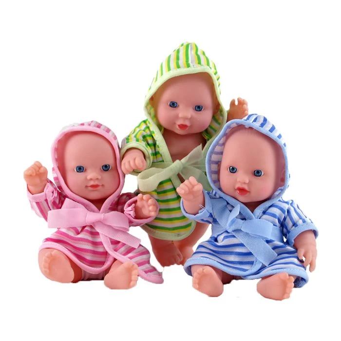 Een stevig schattig popje met een badjasje aan.