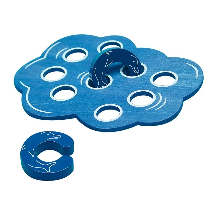 Een behendigheidsspel van hout. Wie zwemt er het snelst naar de overkant?