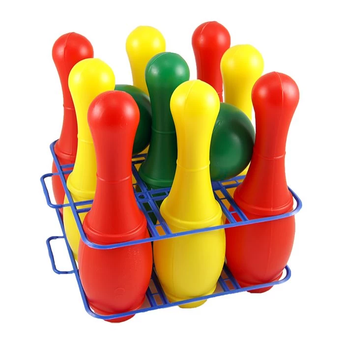 Wil jij oefenen om een ster op de bowlingbaan te worden? Krijg jij alle kegels omver? ‘Strike’! Deze bowlingset bestaat uit 9 gekleurde kegels en 2 ballen. De afmetingen van het product zijn 30×22,5x9cm. Deze set is gemaakt van kunststof.