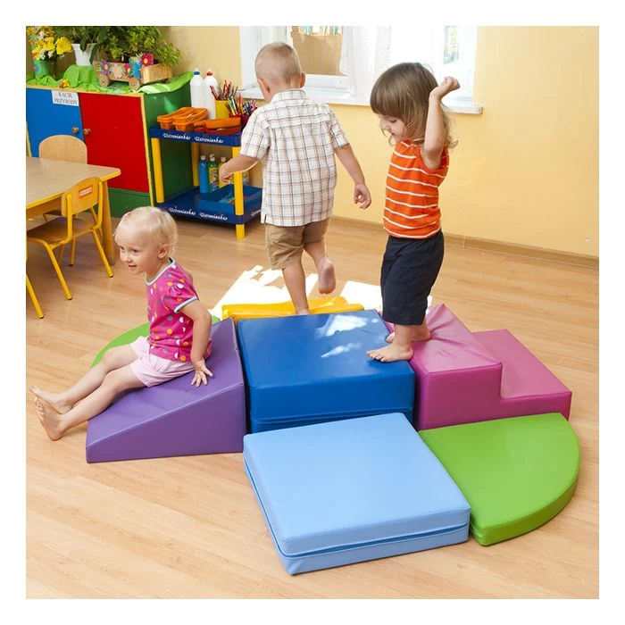 Ieder soft foam element van dit kruipeiland is leverbaar in 13 verschillende kleuren.