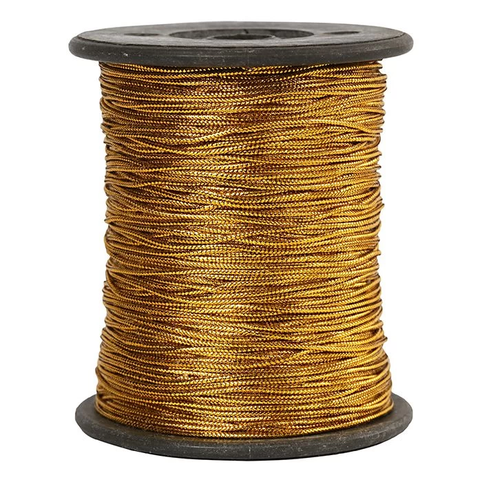 Een rol van 100 meter lang goud koord. De dikte van het koord is 0,5 mm.