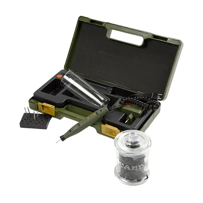 Graveermachine voor glas – set bevat 4 graveerstiften van diamant, grafeerbaar testglas en een boekje met ideeën in een duurzame polypropyleen opslagkoffer