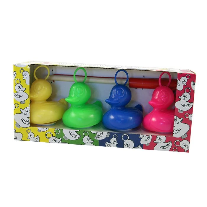 De eendjes zijn 12 cm hoog en 8 cm breed. Onder de eendjes zit een verzwaring, zodat de eendjes rechtop in het water blijven dobberen. De eendjes hebben 4 verschillende kleuren, namelijk geel, groen, blauw en roze.