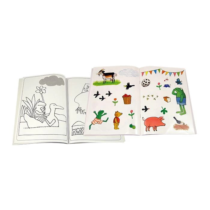Stickers plakken en kleuren met kikker. Bevat 4 pagina’s met stickers en 16 pagina’s met een kleurplaat aan beide kanten.