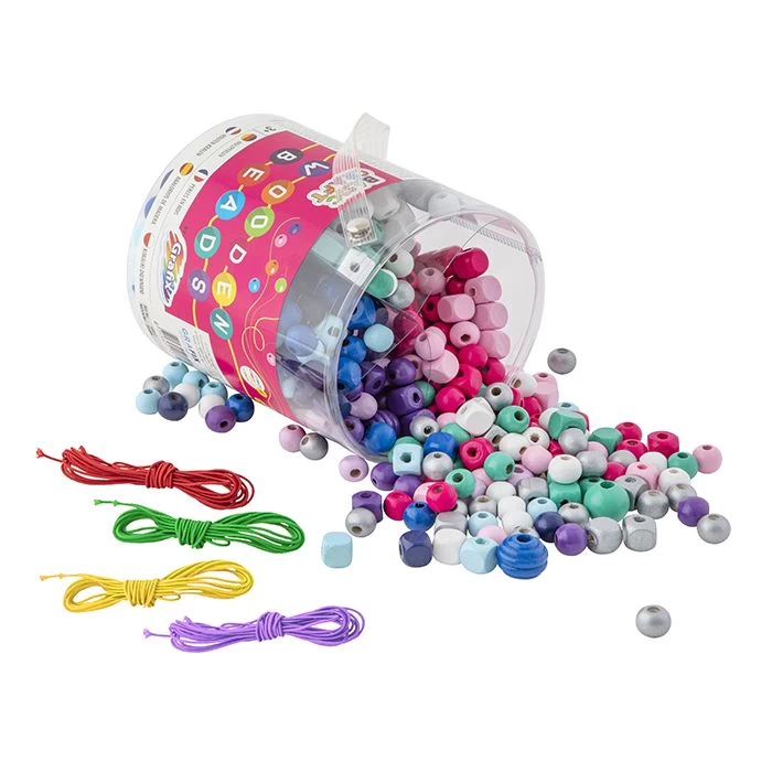 ± 200 Houten kralen met 2 rijgsnoeren in emmer.