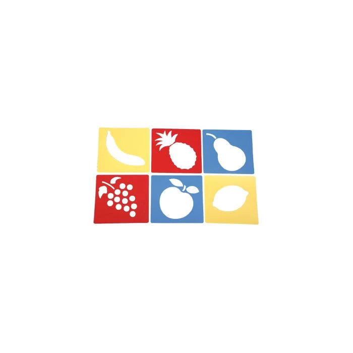Knutsel sjablonen set van 6 verschillende fruitsoorten. Peer, druif, banaan, citroen, ananas en appel.