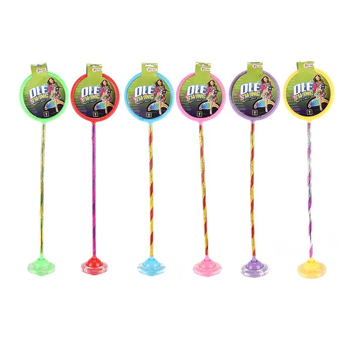 Doe je voet door de opening en krijg de bal in beweging. De bal heeft van binnen een lichtje! Wie kan de olé swing het langst draaiende houden?