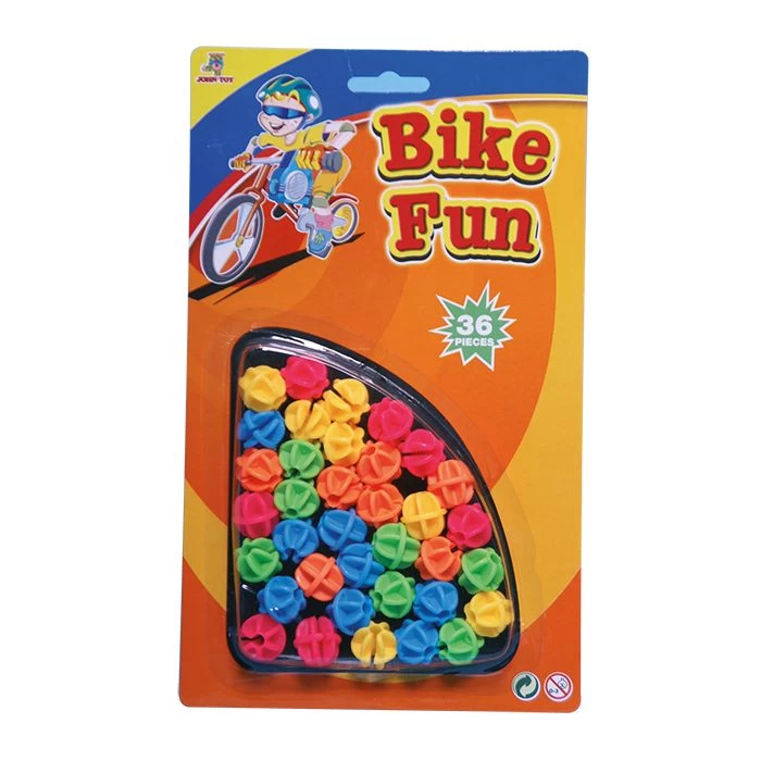36-delige set met kralen in diverse kleuren om de spaken van je fiets te versieren.