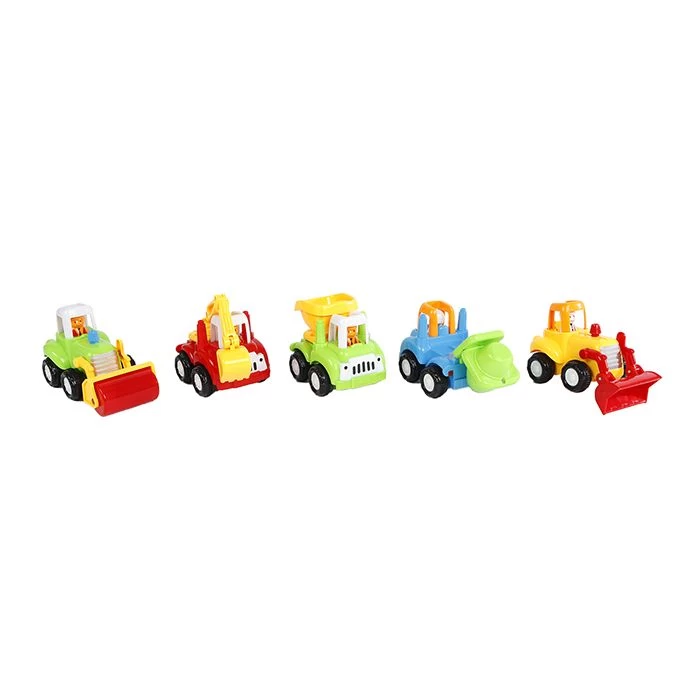 Vrolijk gekleurde constructievoertuigjes met een pull-back functie.