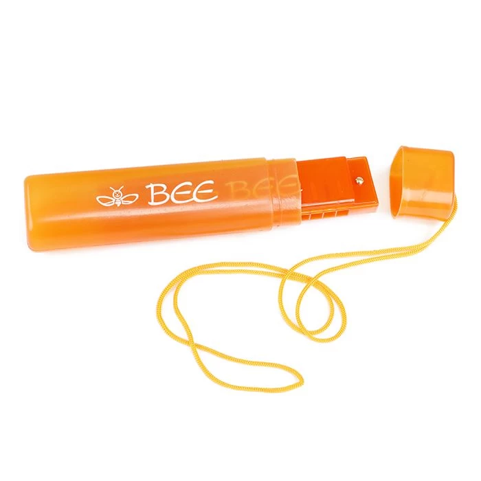 Stevige mondharmonica in koker met koord.