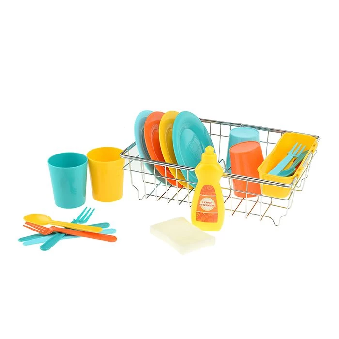 Voor de jonge koks onder ons een vrolijk en kleurrijk servies. Na een middagje kokkerellen voor vrienden kan je je specialiteiten serveren. Uiteraard moet er na het diner ook afgewassen worden, ideaal met zo’n wasrek. Deze set bestaat uit 4 bordjes, 4 bekers, 4 besteksets, 1 sponsje, 1 flesje afwasmiddel en een afwasrek. De afmetingen zijn 17x22x26 cm.