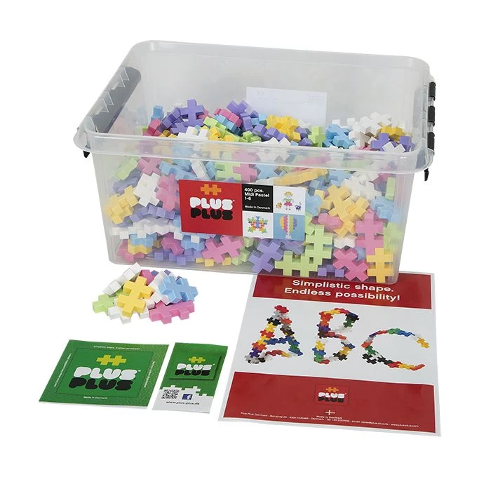 400 BIG stukjes van 5 x3 cm in zachte pastel kleuren, inclusief voorbeeldboek. De allerkleinste bouwwonders vinden volop uitdaging om de mooiste dingen te maken, al vanaf 1 jaar!